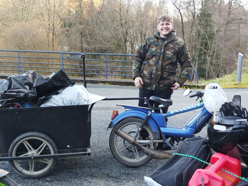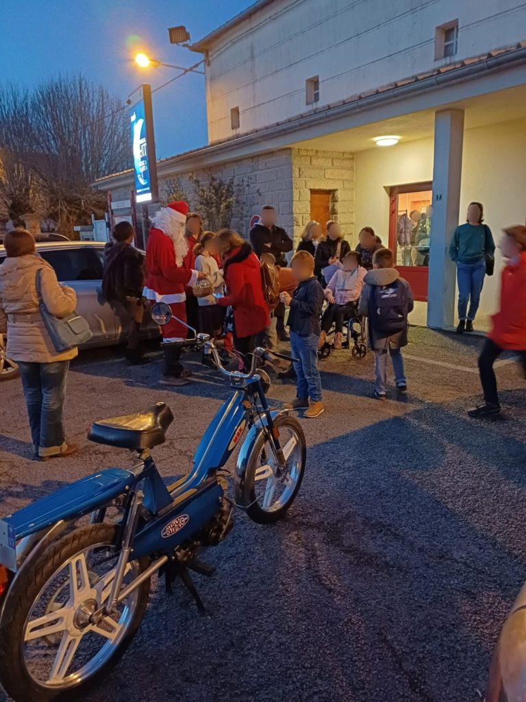 Lucas a eu la gentillesse de prêter sa mobylette au père Noël afin qu’il puisse donner des cadeaux aux enfants de Treignat. Merci à lui !